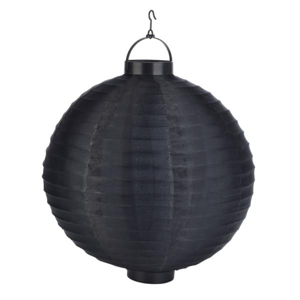 This 14" 16 LED black round nylon battery lantern is great for indoor or outdoor use. Hang this lantern from anywhere and illuminate with 3 AAA batteries. This lantern can either be hung or set on a table as a centerpiece. Use this lantern as the centerpiece for your wedding or hang it from trees or around the home. Batteries not included, lantern comes with 16 built in LED super efficient bulbs. This nylon battery lantern will last over 8+ hours on one set of batteries. Lanterns come with a on/off switch. Comes with a plastic hook on top of the lantern for easy hanging.