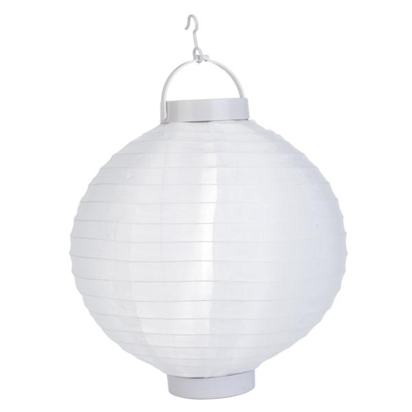 This 10" 16 LED white round nylon battery lantern is great for indoor or outdoor use. Hang this lantern from anywhere and illuminate with 3 AAA batteries. This lantern can either be hung or set on a table as a centerpiece. Use this lantern as the centerpiece for your wedding or hang it from trees or around the home. Batteries not included, lantern comes with 16 built in LED super efficient bulbs. This nylon battery lantern will last over 8+ hours on one set of batteries. Lanterns come with a on/off switch. Comes with a plastic hook on top of the lantern for easy hanging.
