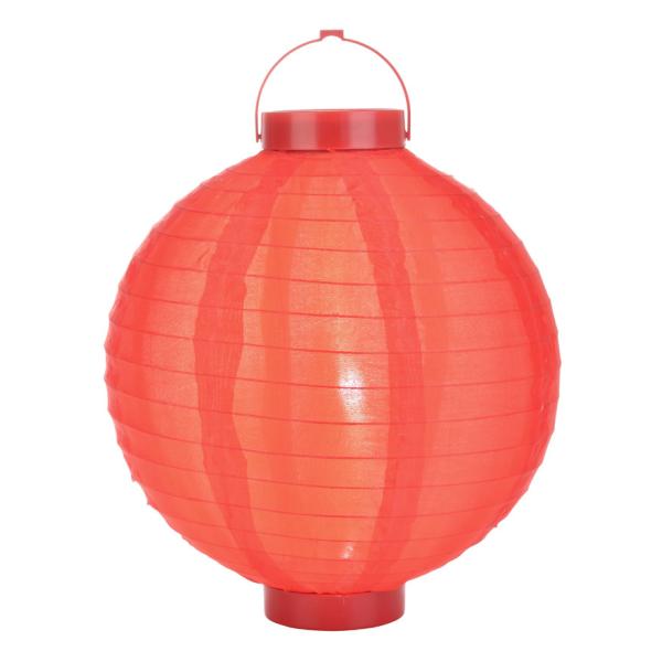 This 10" 16 LED red round nylon battery lantern is great for indoor or outdoor use. Hang this lantern from anywhere and illuminate with 3 AAA batteries. This lantern can either be hung or set on a table as a centerpiece. Use this lantern as the centerpiece for your wedding or hang it from trees or around the home. Batteries not included, lantern comes with 16 built in LED super efficient bulbs. This nylon battery lantern will last over 8+ hours on one set of batteries. Lanterns come with a on/off switch. Comes with a plastic hook on top of the lantern for easy hanging.