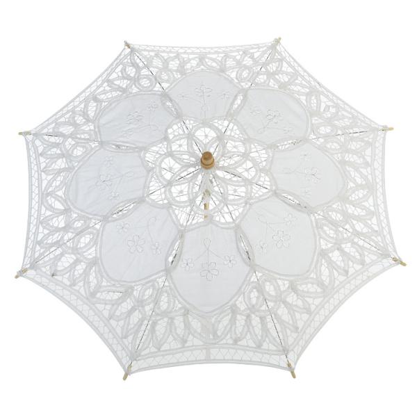 Our fancy 20" white lace parasol is beautiful and exceptional quality. Accented with different cutouts throughout the parasol, this small parasol offers a added touch any party or event.