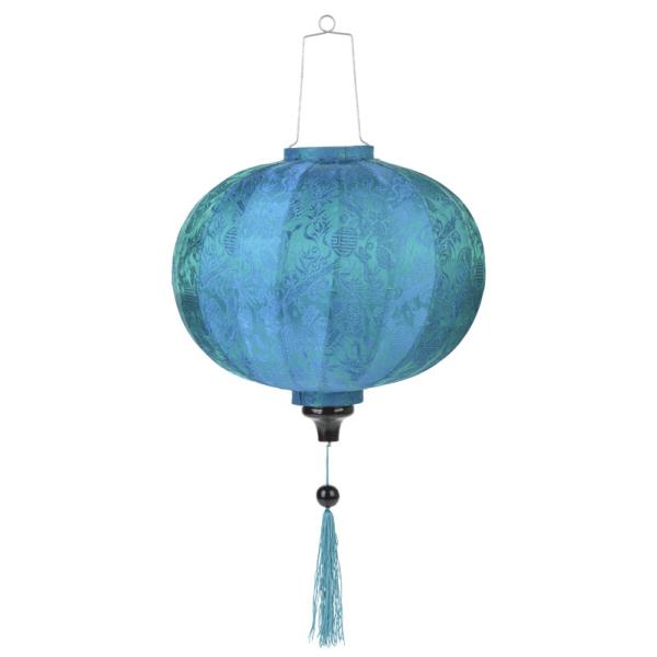 This is our solid turquoise round shaped silk lantern with meaningful patterns printed on the silk. Display this lantern in any party, wedding, hotel, or nightclub.