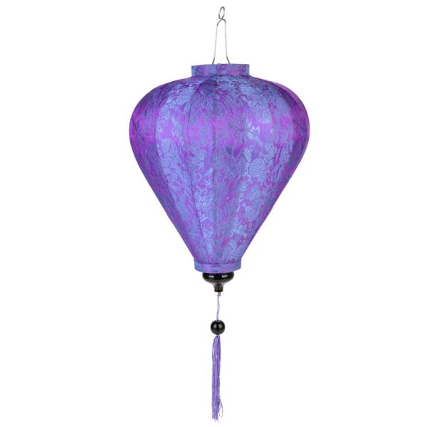 This is our solid purple garlic shaped silk lantern with meaningful patterns printed on the silk. Display this lantern in any party, wedding, hotel, or nightclub.