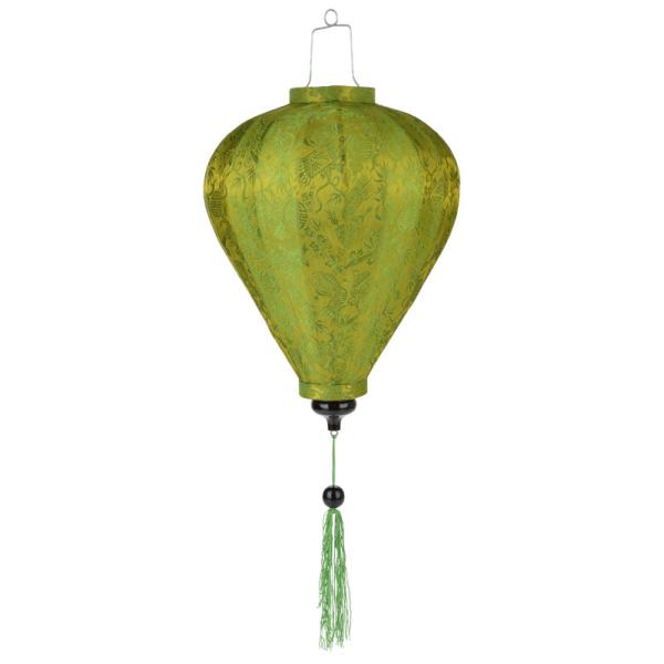 This is our solid green garlic shaped silk lantern with meaningful patterns printed on the silk. Display this lantern in any party, wedding, hotel, or nightclub.